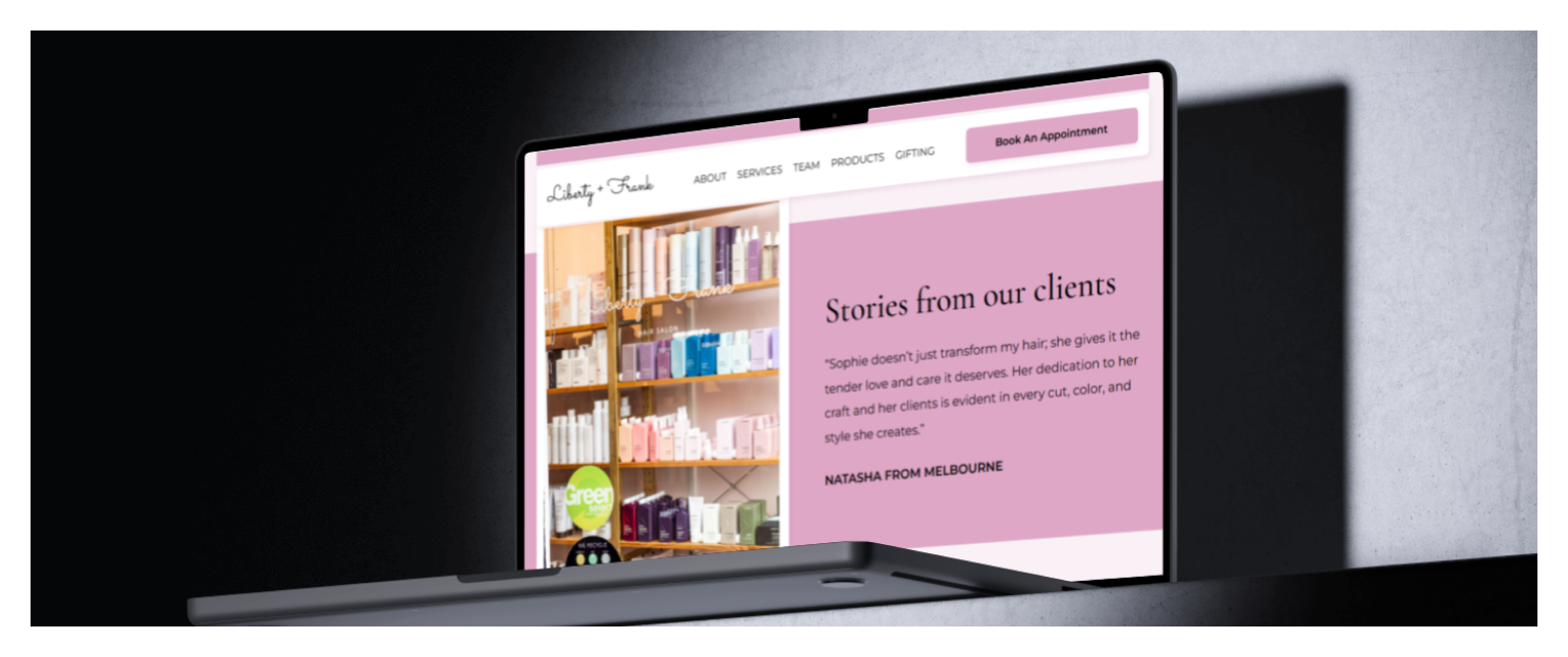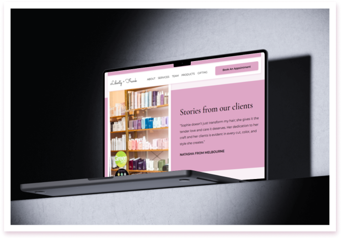 The website successfully reflects Liberty and Frank’s brand while providing a seamless user experience. The elegant design, combined with functional features like online booking and social media integration, enhanced client engagement and simplified appointment scheduling. The website now acts as an essential tool for attracting new clients and maintaining existing relationships.